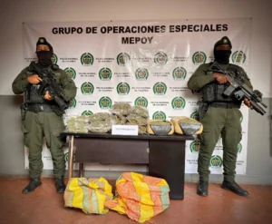 En Popayán, la Policía Nacional, a través del Grupo de Operaciones Especiales, reportó el hallazgo de 18.25 kilogramos de una sustancia vegetal con características similares a marihuana en el barrio Santo Domingo.